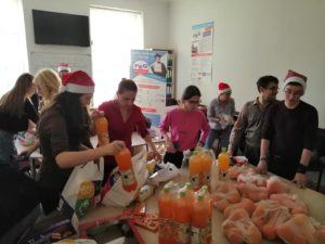 In perioada 18.12.-20.12.2019, cativa dintre inimosii care au donat bani, alimente, haine si jucarii, au participat si la activitatile de donare a acestora catre beneficiari sau deplasandu-se la Directia de Asistenta Comunitara Iasi si la Parohia “Pogorarea Sfantului Duh”. Dorim sa le multumim tuturor celor implicati pentru mobilizarea exemplara!